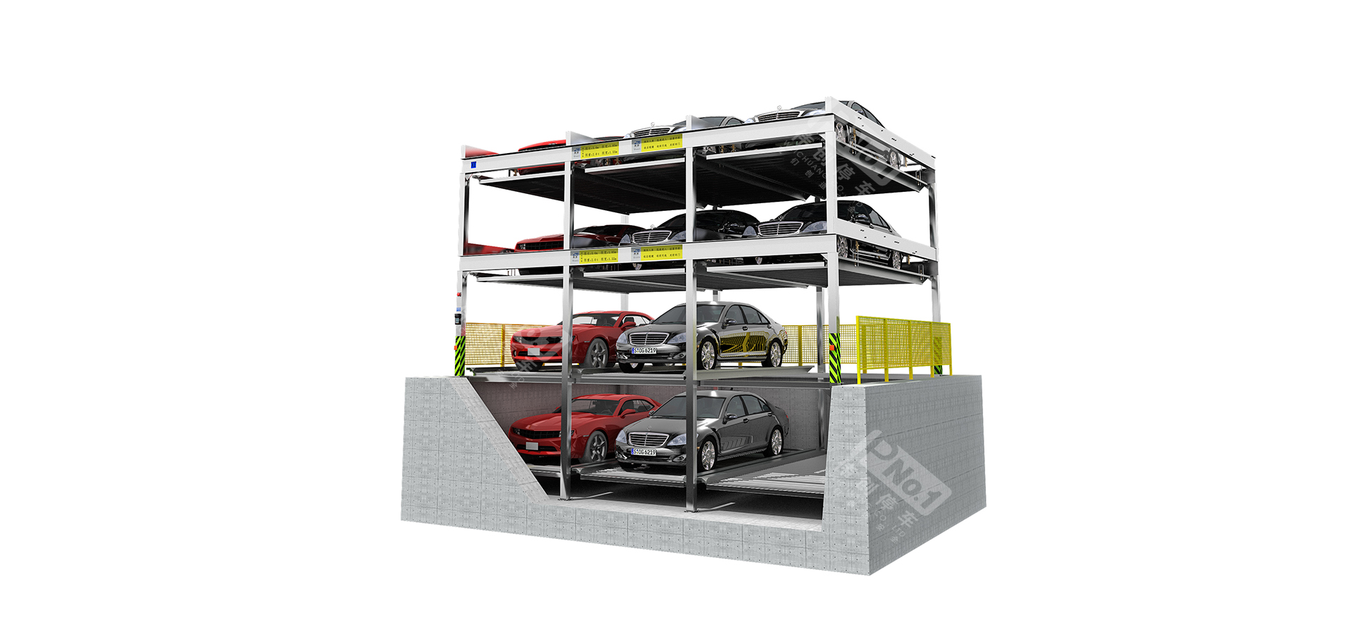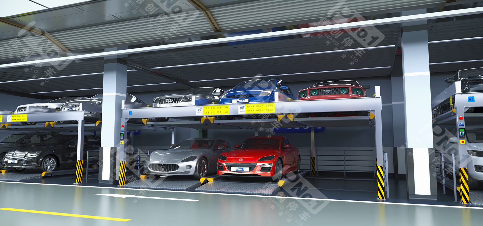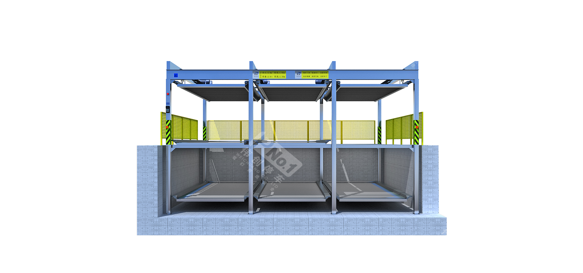 升降橫移停車設備一般采用二層至八層。二層多用于地下停車場,三層至八層適合地面安裝,其中包括地坑式。這類停車設備,每個車位均有載車板,載車板通過升降、橫移運動到達地面層,駕駛員將所存汽車停放到載車板或?qū)⑤d車板上所停汽車開出,完成存取過程。適用于房地產(chǎn)、醫(yī)院、地鐵站、商業(yè)中心等場所。