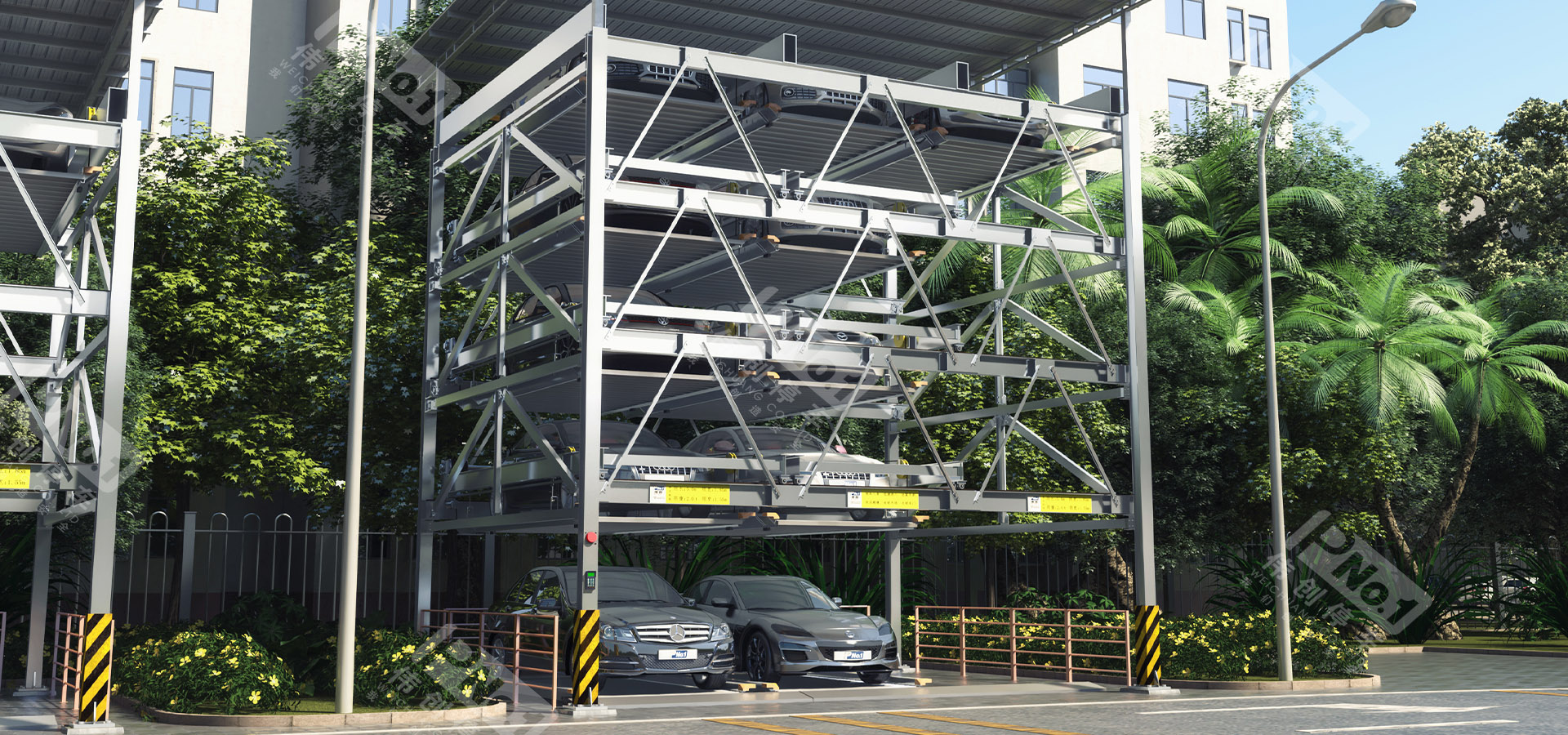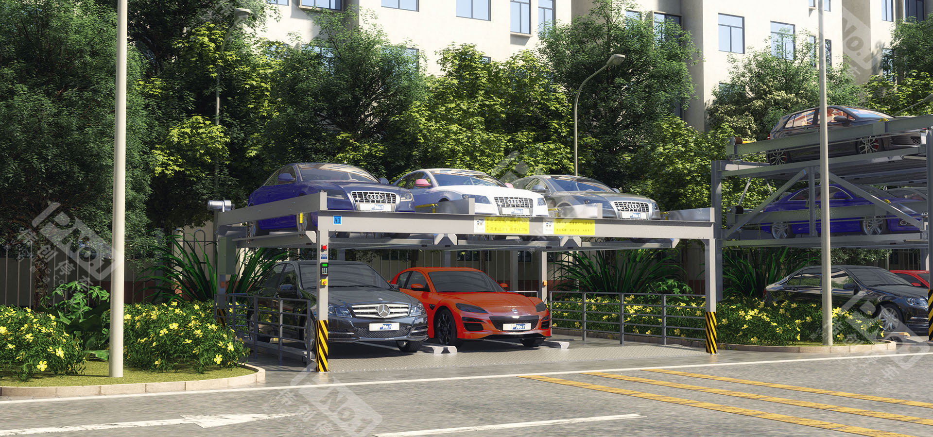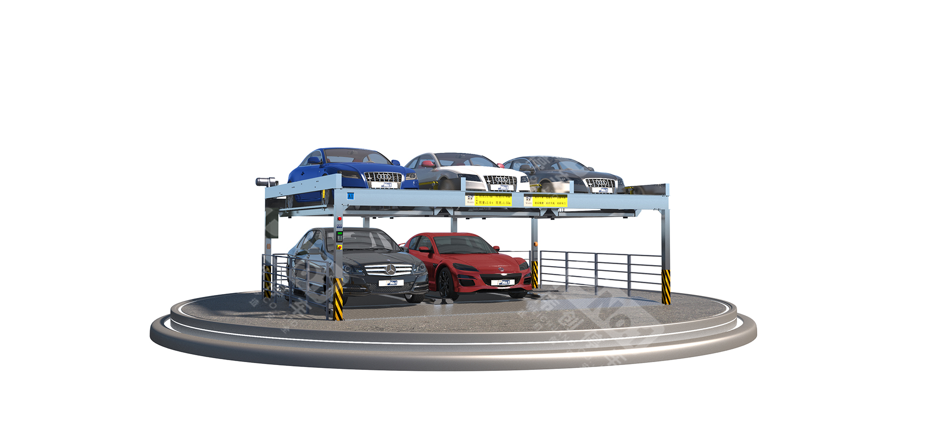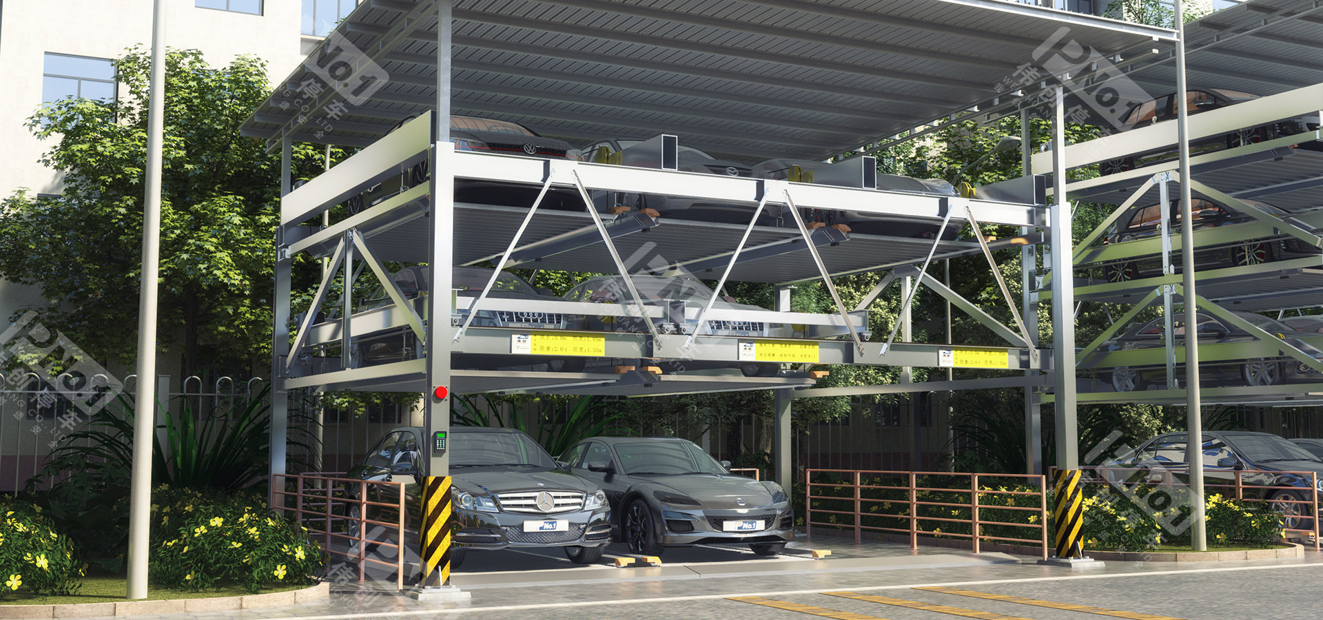 升降橫移停車設備一般采用二層至八層。二層多用于地下停車場,三層至八層適合地面安裝,其中包括地坑式。這類停車設備,每個車位均有載車板,載車板通過升降、橫移運動到達地面層,駕駛員將所存汽車停放到載車板或?qū)⑤d車板上所停汽車開出,完成存取過程。適用于房地產(chǎn)、醫(yī)院、地鐵站、商業(yè)中心等場所。