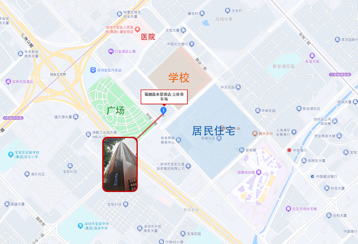 福朋喜來(lái)登立體停車場(chǎng)坐落于深圳市寶安區(qū)中心地帶,位于知名五星級(jí)酒店福朋喜來(lái)登的東南側(cè),新安中學(xué)西南側(cè),向東與甲岸社區(qū)(住宅小區(qū))相望。